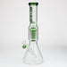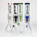 A 16-inch Nice Glass beaker with an 8-arm tree percolator, ice notches, slitted downstem and 14mm herb bowl. Available in a range of accent colour options.